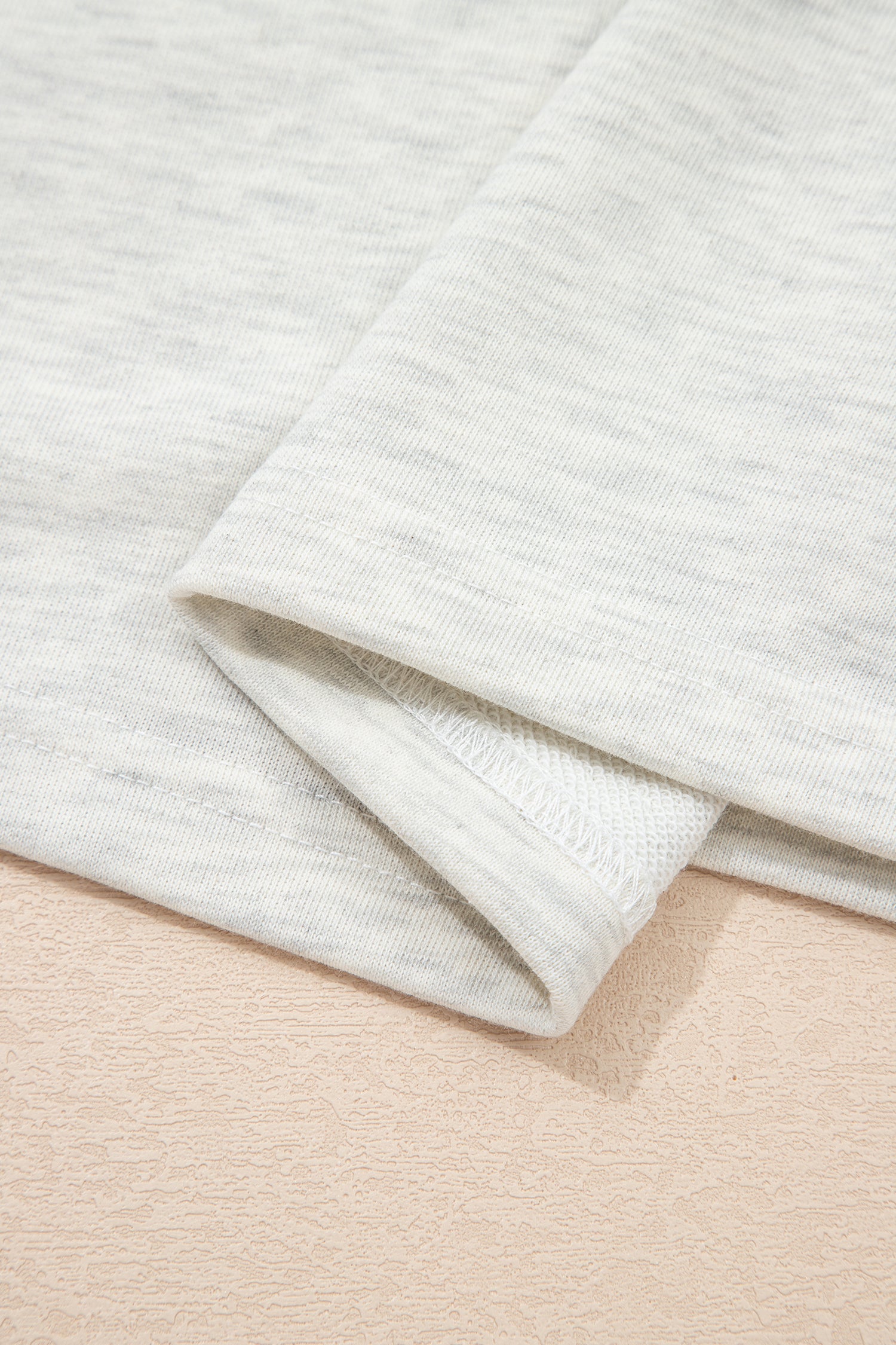 Beige Plus Size Contrast Denim Patchwork Cuffed Sleeve Polo Tee