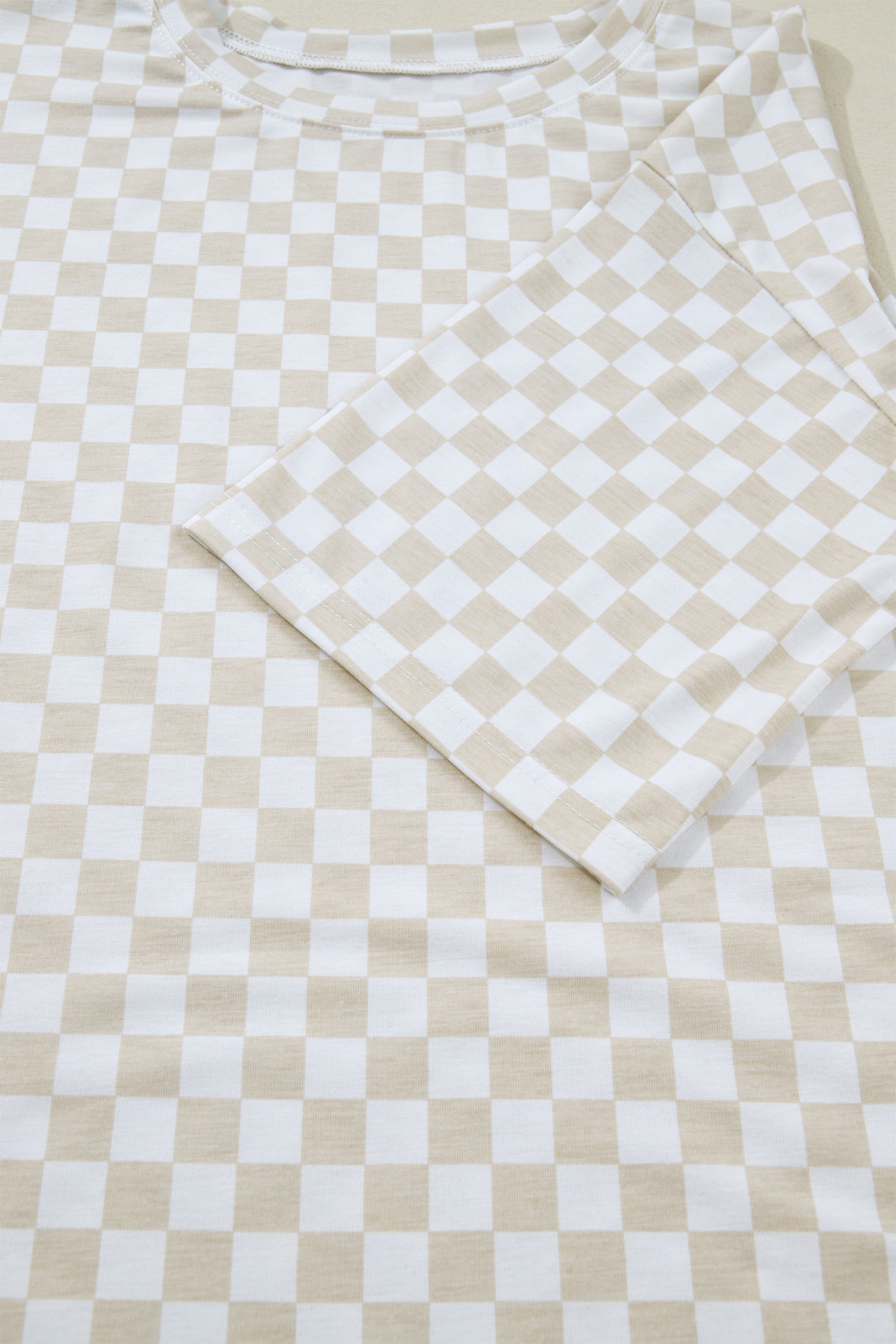Khaki Checkered Print Half Sleeve Tee 2pcs Lounge Pant Set